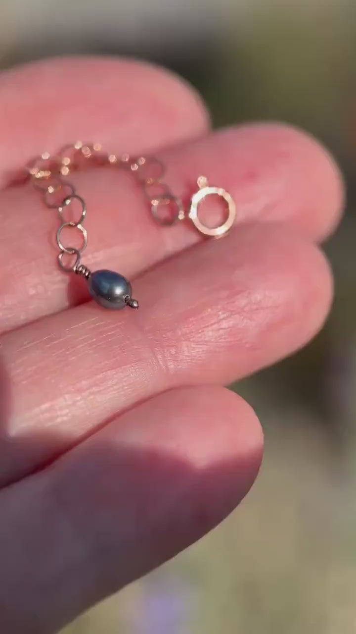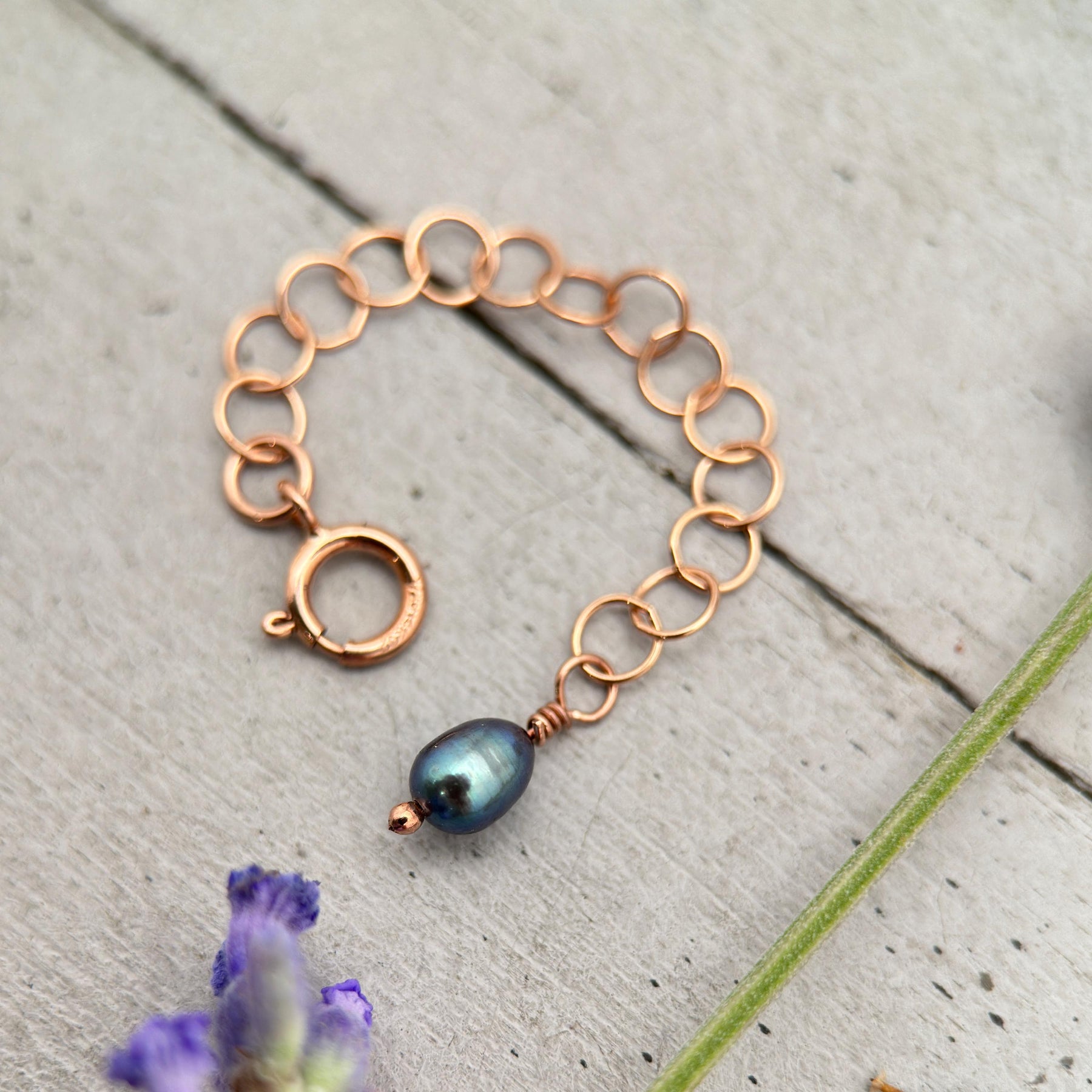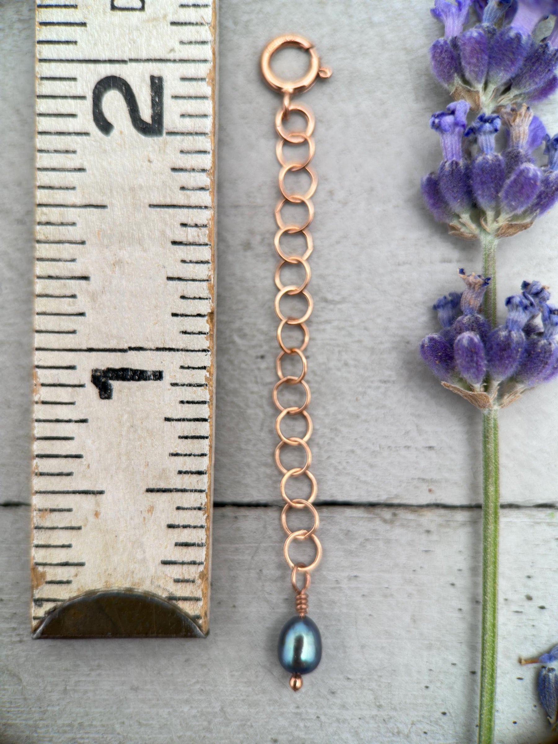 Each extender is accented with a peacock cultured freshwater pearl, adding an elegant finishing touch. Handmade with high-quality rose gold fill, this extender is durable, hypoallergenic, and designed for everyday wear.