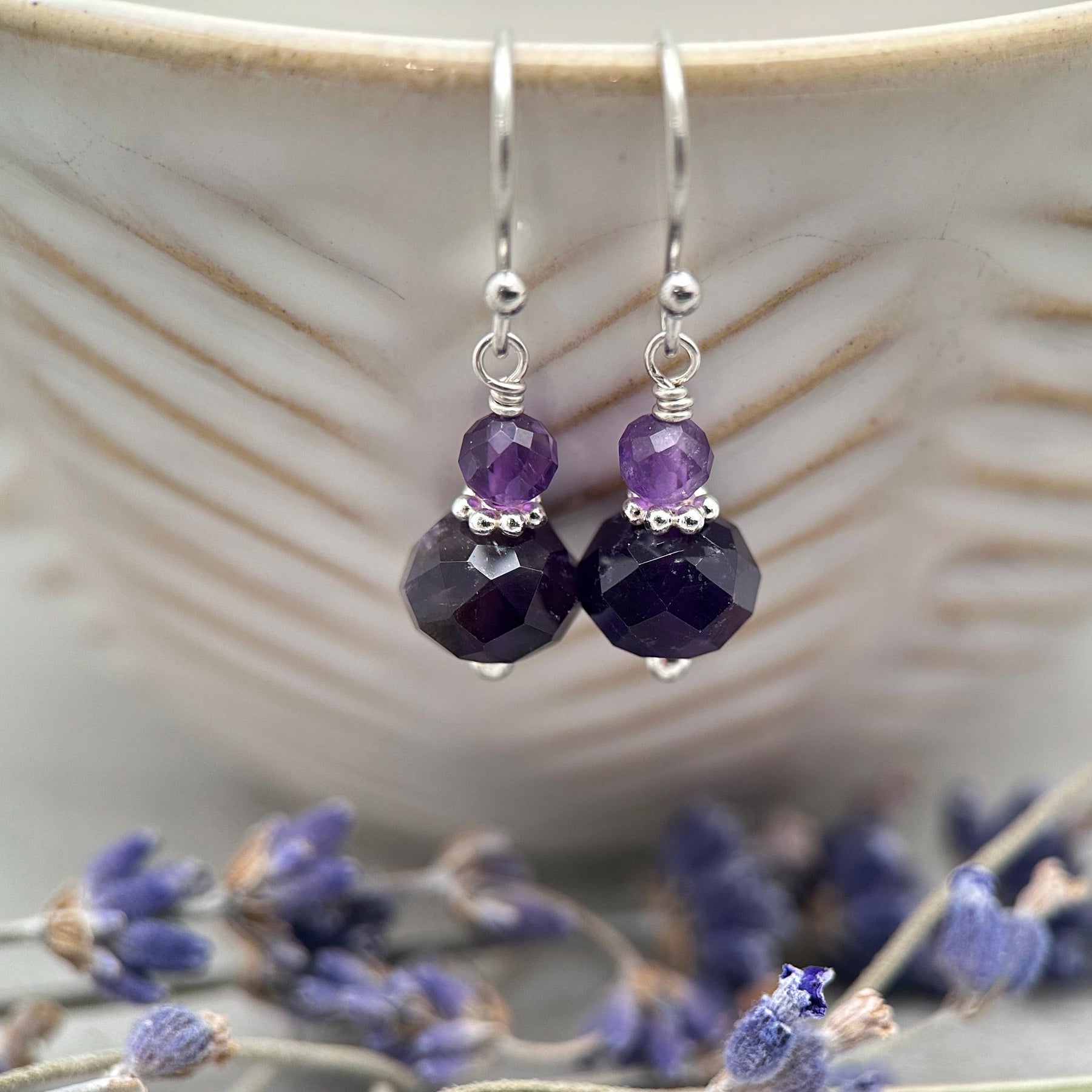 Amethyst Sterling Silver Earrings • Faceted Purple Gemstone Dangle Jewelry • February Birthstone