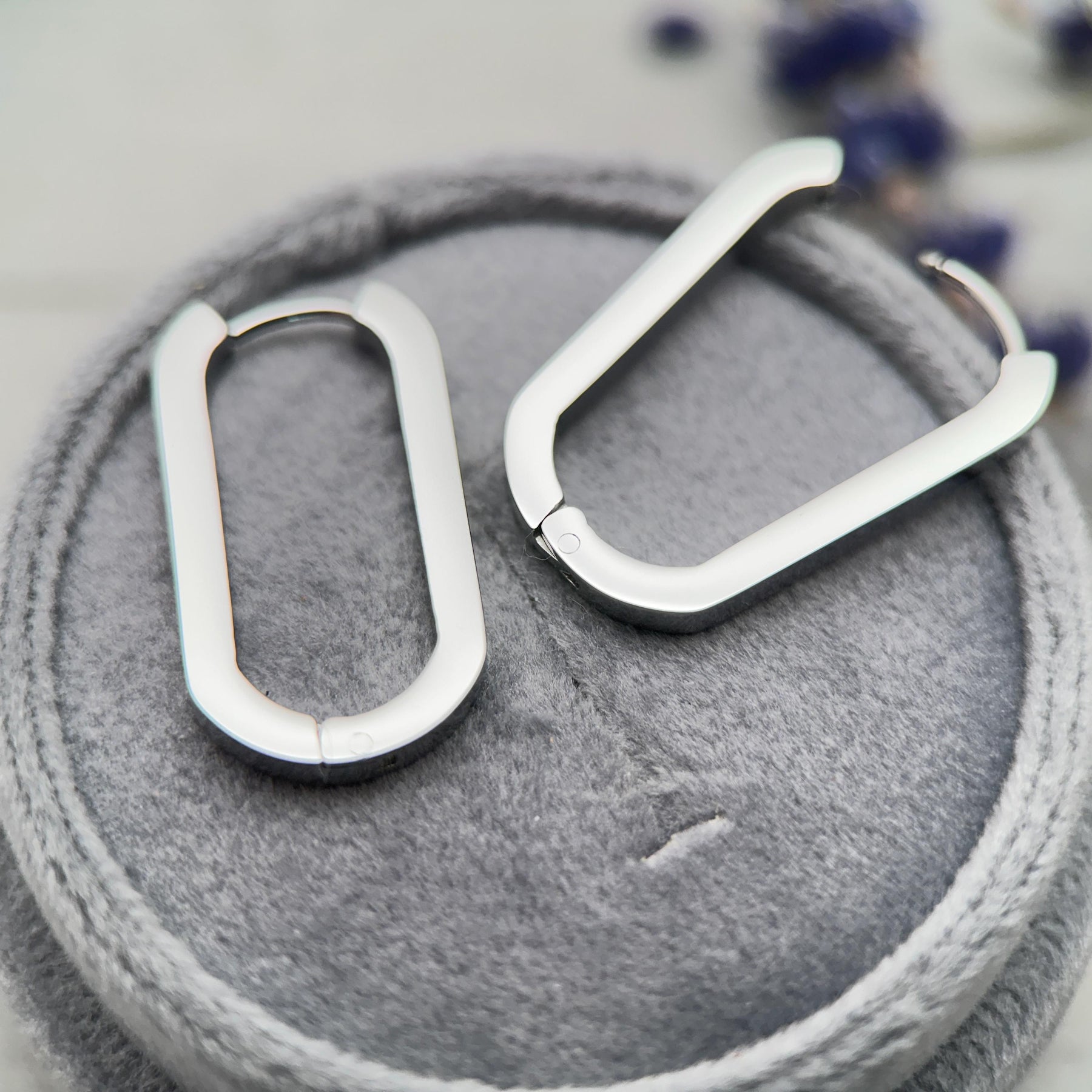 These oval stainless steel hoop earrings feature a sleek, modern silhouette with a distinctive square-profile design. The clean lines and structured shape give these hoops a bold yet minimalist feel—perfect for everyday wear or elevated styling.