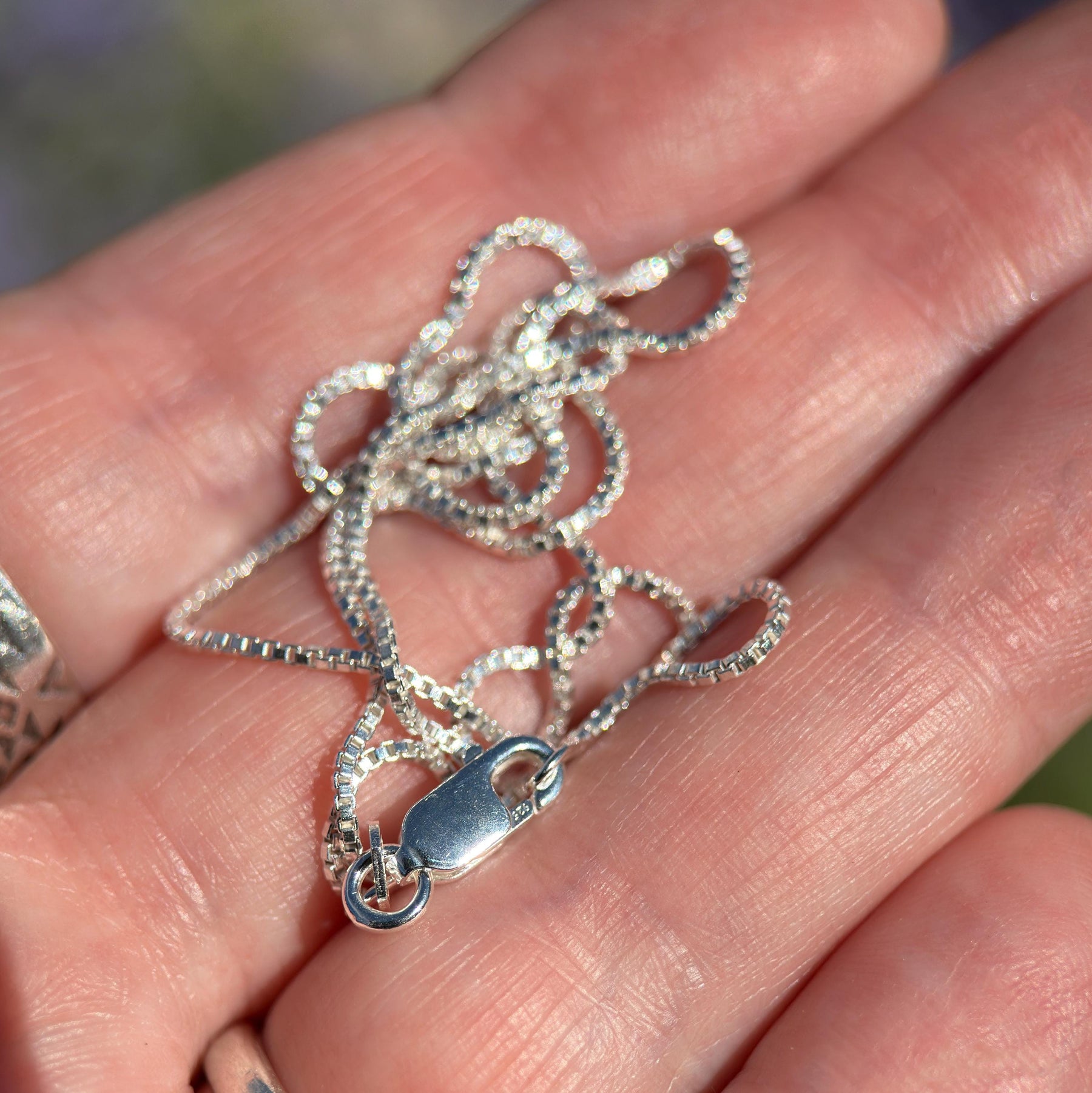 Add timeless shine to your jewelry collection with this classic Venetian box chain necklace. Made from solid 925 sterling silver, this 1mm wide chain features a sleek, square link design that catches the light beautifully. The silver is bright, polished, and perfect for wearing on its own or pairing with your favorite pendant.