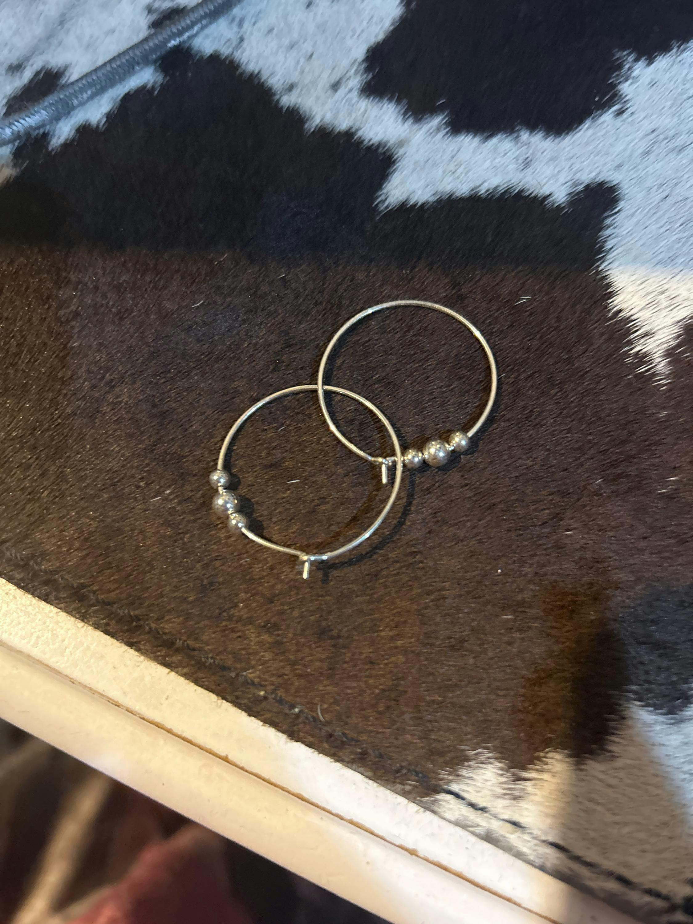 We've added silver beads to our best-selling 1-inch hoop earrings. The 3 shiny silver beads move freely on the hoops, but won't fall off. Our hoops are lightweight and thin but large and bold. They are 1 inch in diameter (side-to-side measurement).