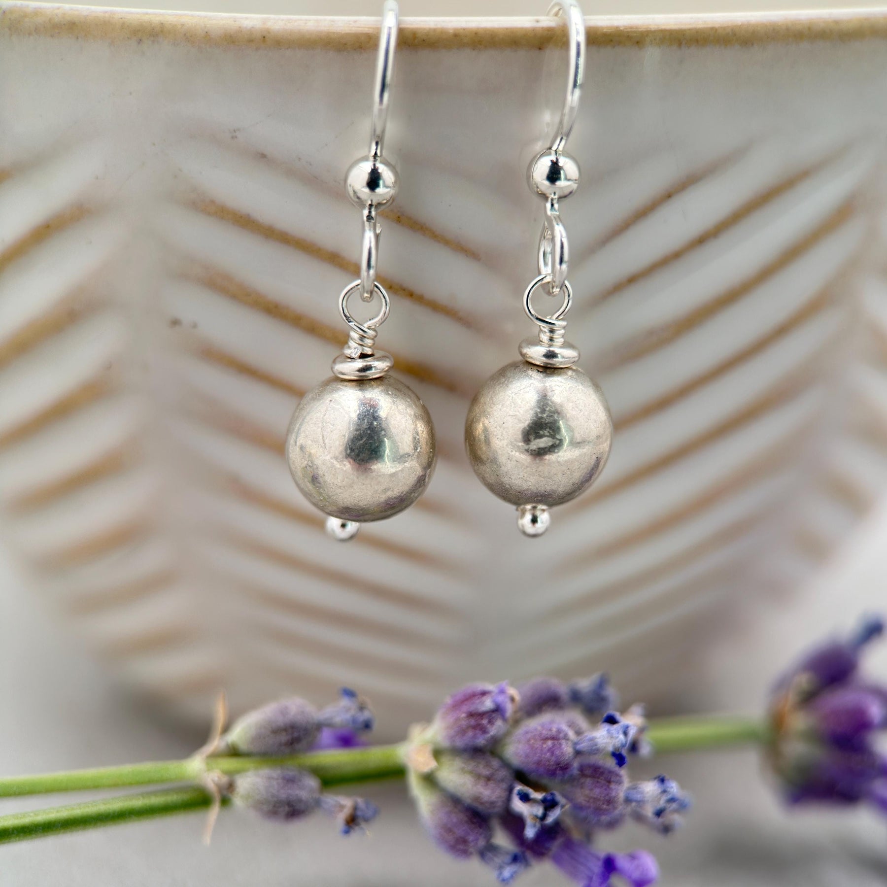 Each earring features a large fine silver bead paired with a sterling silver accents and ear wires. These earrings create movement and shine with every turn of the head. Lightweight and hypoallergenic, they’re comfortable enough for all-day wear while still making a stylish statement.