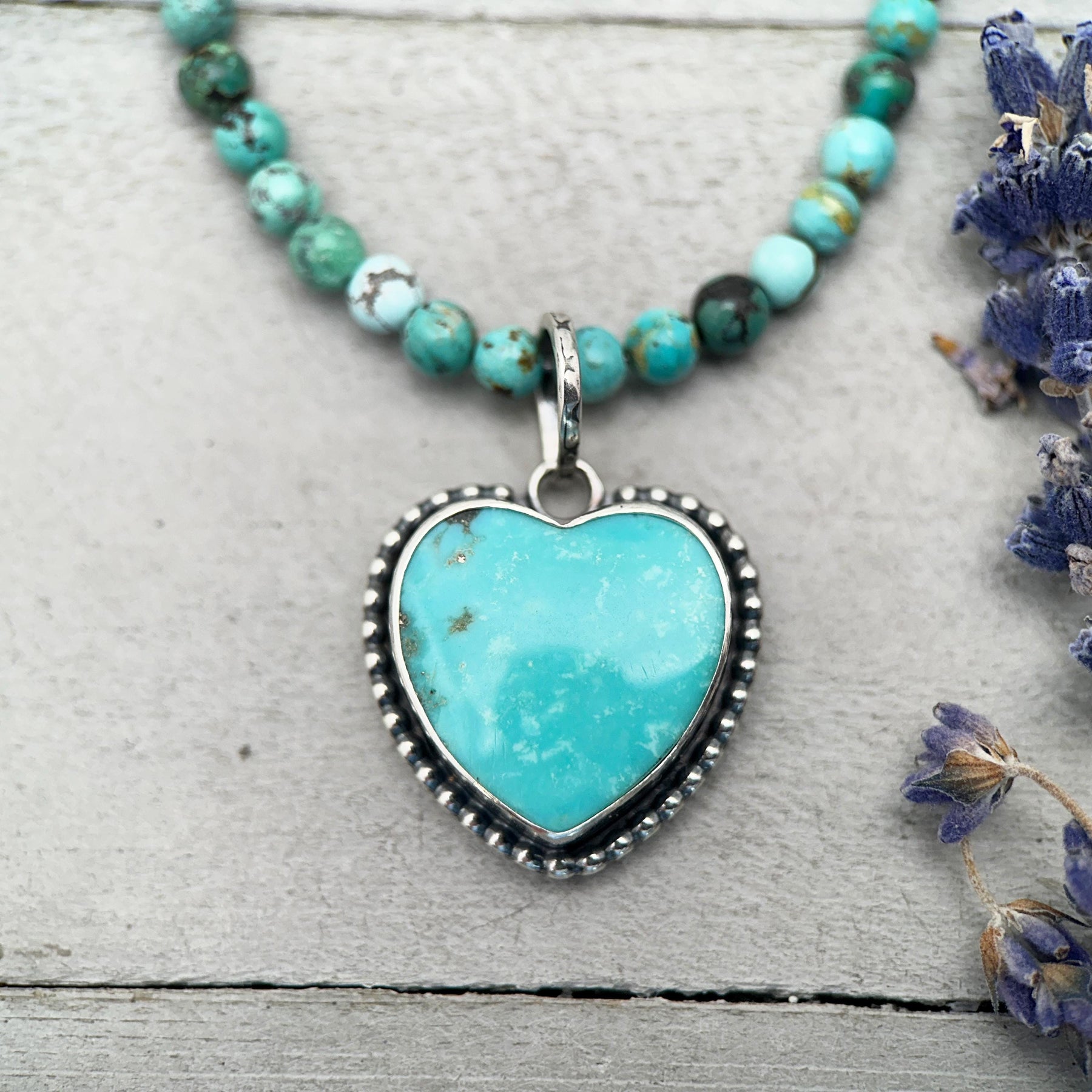 This heart-shaped blue turquoise pendant necklace features genuine Kingman turquoise, one of the most iconic and collectible turquoise varieties in the world. Mined in Kingman, Arizona, USA, this stone is known for its rich blue color, natural character, and Southwestern heritage.