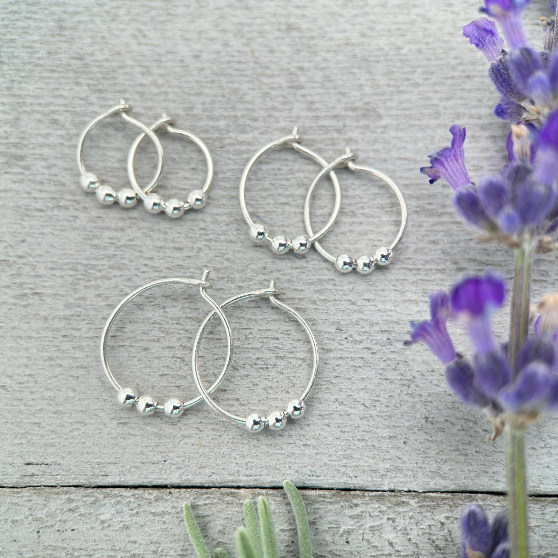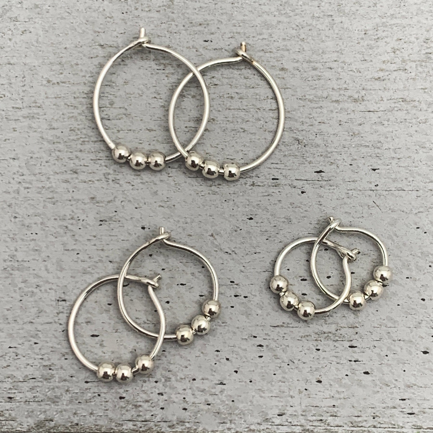 Simple and beautiful, these petite hoop earrings are great for everyday wear. They are so comfortable, that they can be left in your piercings indefinitely! We've added 3 tiny silver beads to our best-selling hoop earrings for a new look.